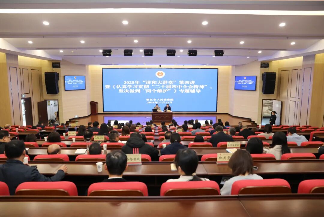 11月13日上午,镇江市检察院举办2025年“清和大讲堂”第四讲暨《认真学习贯彻“二十届四中全会精神”,坚决做到“两个维护”》专题辅导,邀请江苏省委党校党史党建教研部主任张加华教授为全体检察干警作宣讲授课。我院领导班子成员、全体干警参加培训。