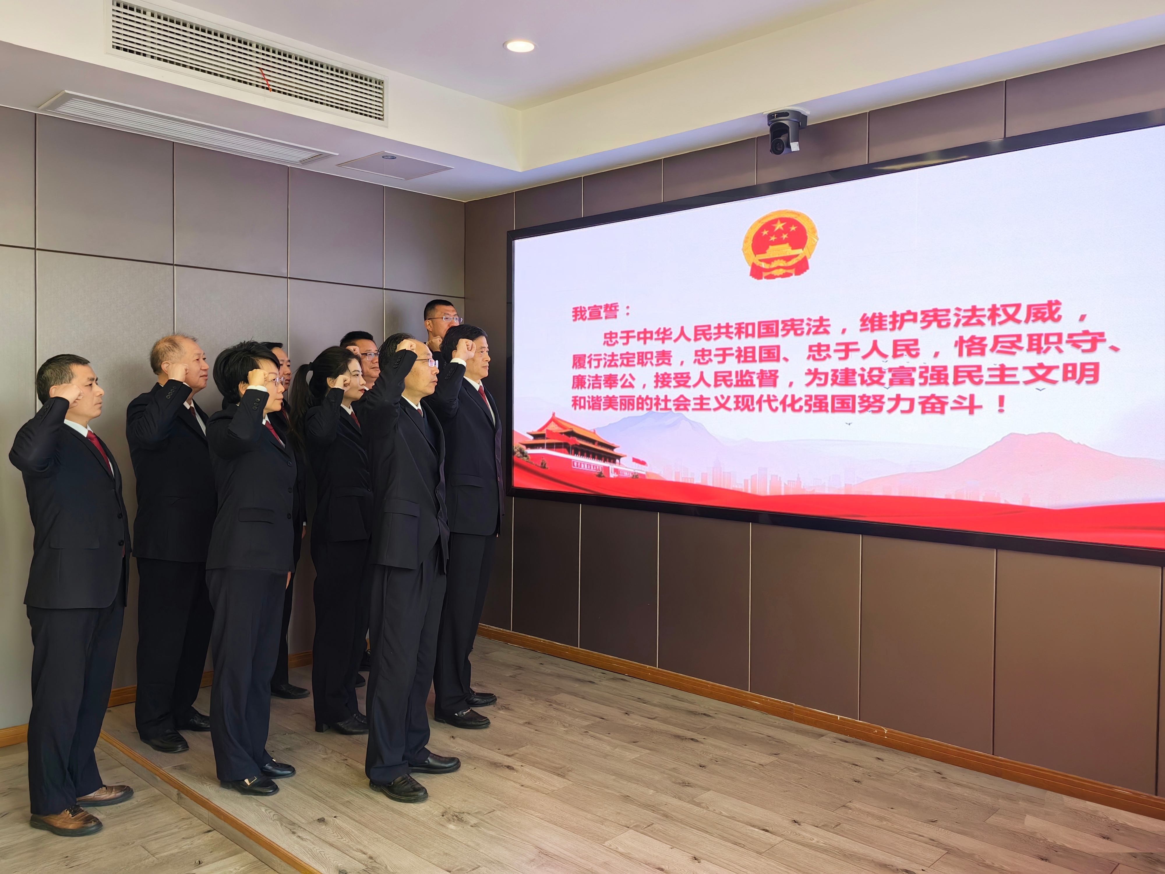 为深入学习贯彻习近平法治思想,进一步弘扬宪法精神,维护宪法权威,12月4日上午,我院举行宪法宣誓仪式。院分党组书记、检察长李晓明领誓,全体员额检察官参加宣誓仪式。